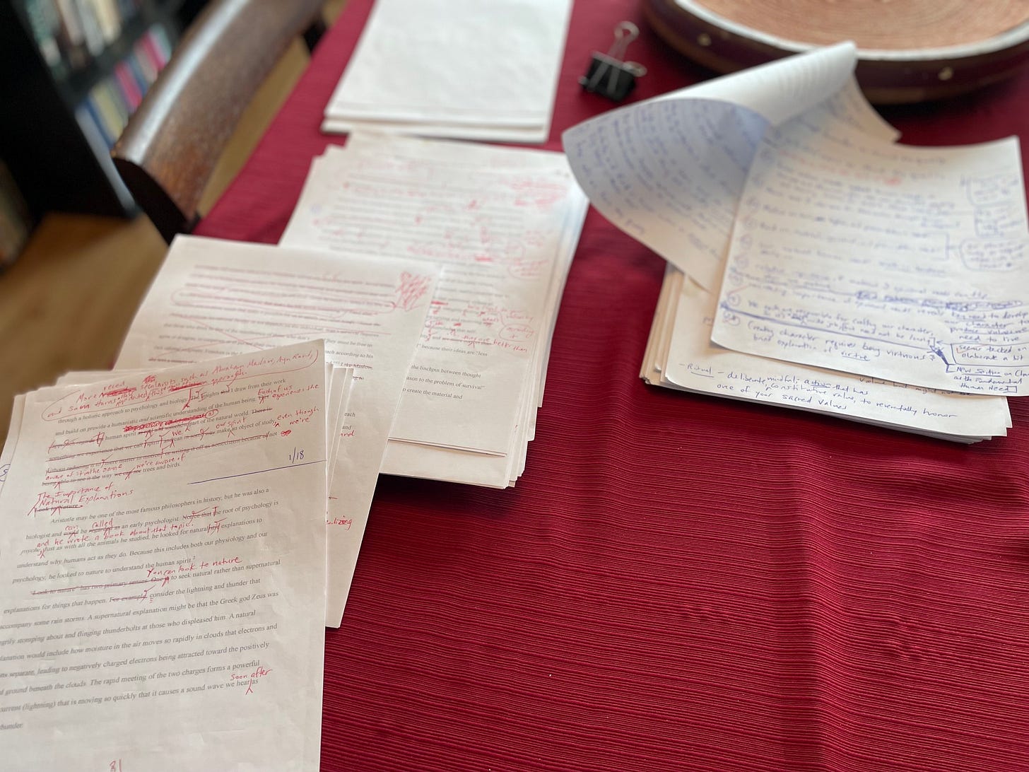 (1) Number the paragraphs in your draft. In my case, Chapter 2 had 49 paragraphs (spread across five sections). I use a blue pen for this. Red pens, for me, are for copyediting and proofreading.