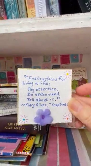 The ultimate destination (this time) for these tiny canvases was Little Free Libraries. We had so much fun wandering around downtown Orlando from one little library to another, leaving behind a tiny canvas or two to surprise and delight those stopping by to check out the books.